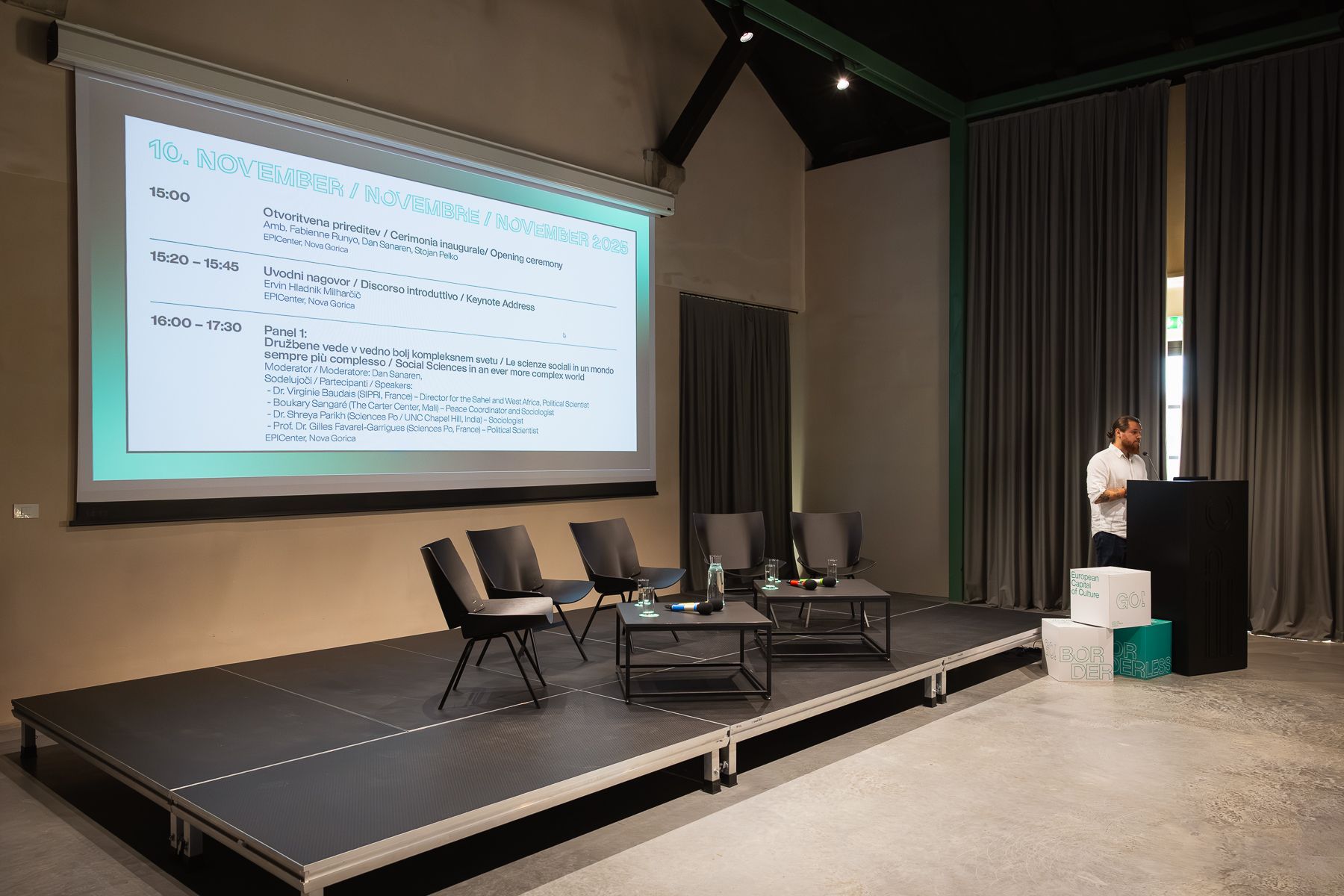 Yesterday marked the opening of the Festival of Complexity at the EPICentre in Nova Gorica. As part of the European Capital of Culture 2025 Nova Gorica – Gorizia, the festival provides a space to confront the pressing questions of our time – from the erosion of democratic norms to global conflicts and the impact of digital infrastructures on everyday life.